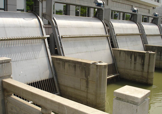 減速機驅動鏈輪使鏈耙牽引系統旋轉運行,帶動牽引鏈間的齒耙隨同運行,由于每個齒耙都插入柵條中,能有效地將攔截的污物耙送到機架上部極限位置,齒耙在鏈條回轉換向的過程中,污物脫落至渣斗。