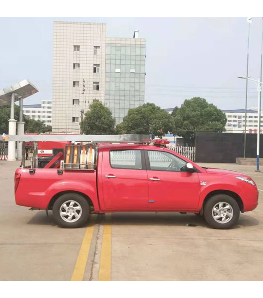 便捷式消防作戰(zhàn)單元由江鈴皮卡、警報(bào)系統(tǒng)、手抬泵、電動小推車、升降裝置、液壓總成、水帶整理架、軟水管U型架、隨車配套的器材支架及整理箱等組成。